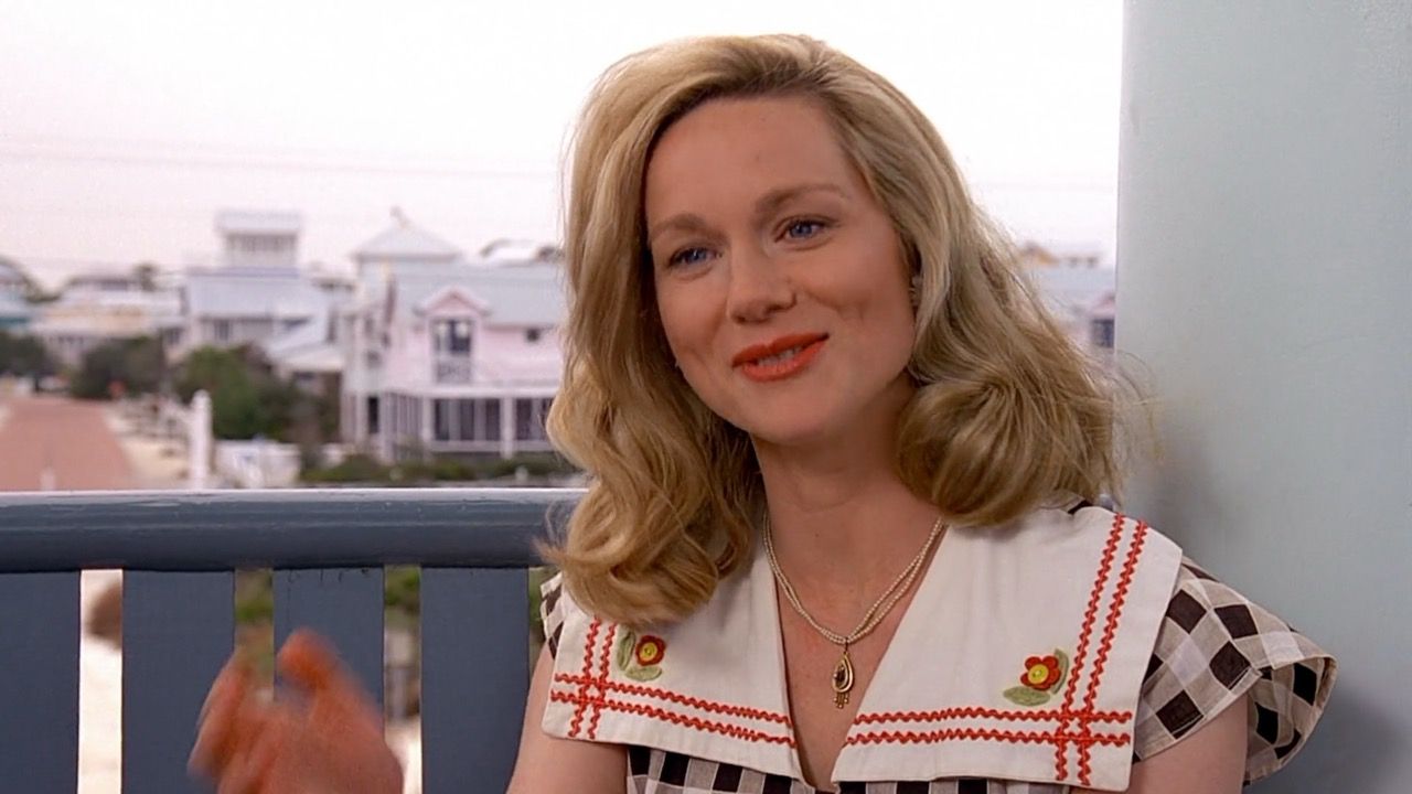 Figure 14: MONTAGE (h), (Laura Linney) as Hannah Gill as Meryl Truman – We are being told (by Weir) that the actual actors of Carrey, Harris, Linney, Emmerich who would typically appear in the credits are less important to what we need to know than their in world personas of Truman, Christof, Gill and Coltrane